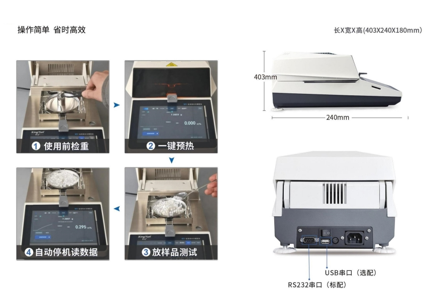 KX-F系列鹵素水分測(cè)定儀,可快速測(cè)定顆粒狀、粉末狀、片狀物、*揮發(fā)性液體中的水分含量,廣泛應(yīng)用于制藥業(yè)、化學(xué)工業(yè)、電子及半導(dǎo)體行業(yè)、塑膠原料、橡膠、煙草、茶葉、食品、淀粉、飼料、煤炭、型砂、污水污泥、乳業(yè)等。